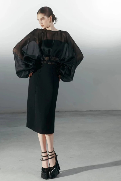 Phong cách thời thượng với tông đen trắng chính là những món đồ tối giản được diễn giải theo nhiều cách khác nhau. Những chiếc váy xòe bồng, xếp lớp, những chiếc áo cúp ngực, quần shorts ngắn hay những món đồ chất liệu voan, tơ, vải sheer... chính là những kiểu dáng sành điệu, mang đậm hơi thở "sân khấu", tiệc tùng, cuốn hút không thua kém gì những chiếc váy dạ hội ánh đồng, ánh bạc hay diêm dúa đính kết. Các thiết kế sáng tạo bóng bẩy, những họa tiết, bản in hay các kiểu kỹ thuật kết cấu - từ gam màu đen trắng đều có thể giúp tạo ra một cái nhìn độc đáo và nguyên bản..png)